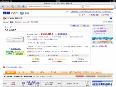 栄の喫茶店でエアコン探し in 価格コム