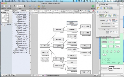 Omni GraffleはMac用のドローイングソフトです。FireworksやIllustratorなどのように綺麗に作る用途ではなく、情報をサッと視覚化するために使います。