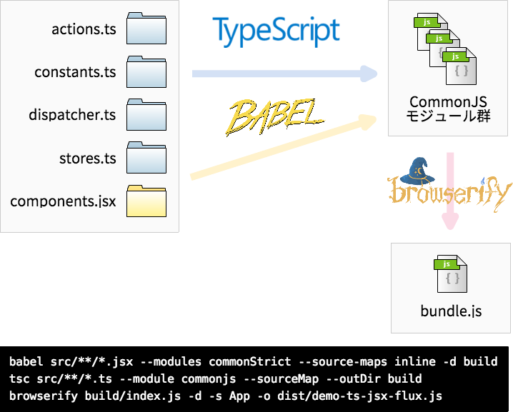 ECMAScript 6 は、TypeScript と JSX with Babel の共通するお父さんです。けど、3人が一緒に住める家を作るのはめんどくさいです。