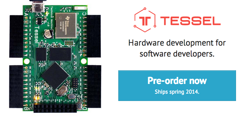 有名所だとArduinoがありますが、@cssradarのひとに教えてもらったのは、Tesselが楽しそう。Kickstarterで立ち上がって今はプレオーダーを受け付けている状態ですが、来年の春ごろにはお目見えするようです。