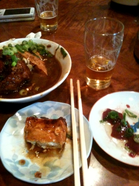 ホテルにチェックインしたあと、しばし休んでから、京都駅近くの飲み屋さんへ。レバ刺しが食べれるとか関西のはずなのに八丁味噌ベースのおでんが食べられるとかの情報にホイホイ釣られて。