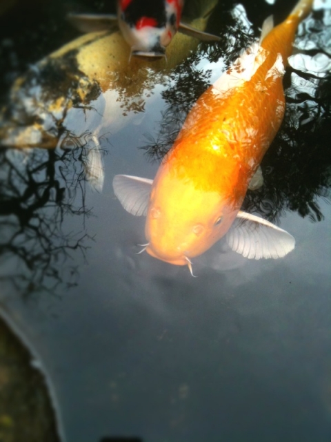 店の敷地内に池やら灯籠やら、ぷち日本庭園の風情を醸し出す設備が。池の中には立派な大きさの鯉がふよふよと。うむむ。